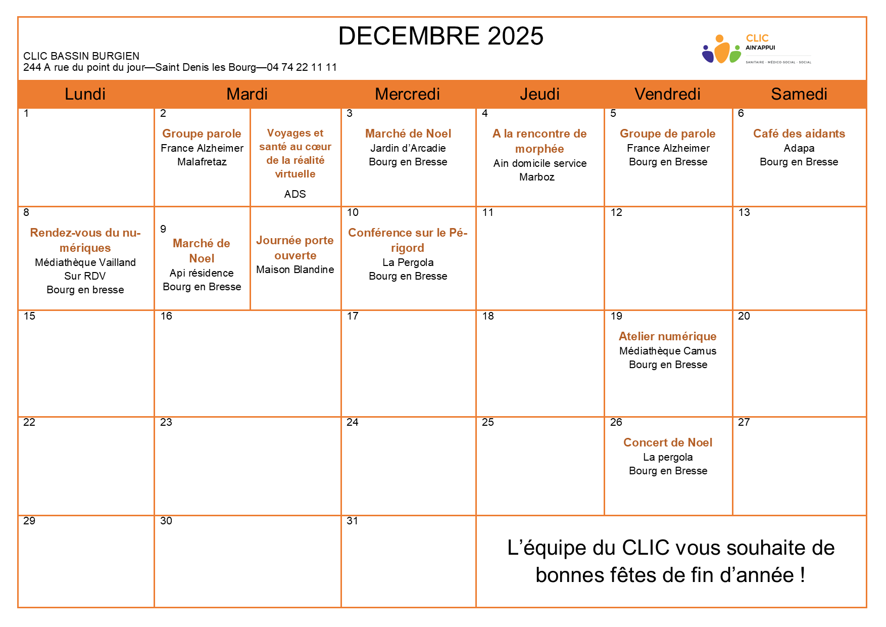 Téléchargez ici le calendrier en format PDF Décembre 2025